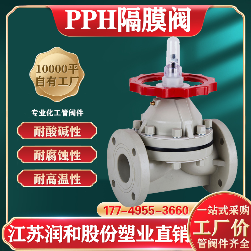 PPH隔膜阀的结构简单、流体阻力小、流通能力较同规格的其他类型阀大;无泄漏,能用于高粘度及有悬浮颗粒介质的调节。隔膜把介质与阀杆上腔隔离,所以没有填料介质也不会外漏。但是,由于隔膜和衬里江苏钱柜qg777塑业材料的限制,耐压性、耐温性较差,一般只适用于1.6MPa公称压力和150℃以下。