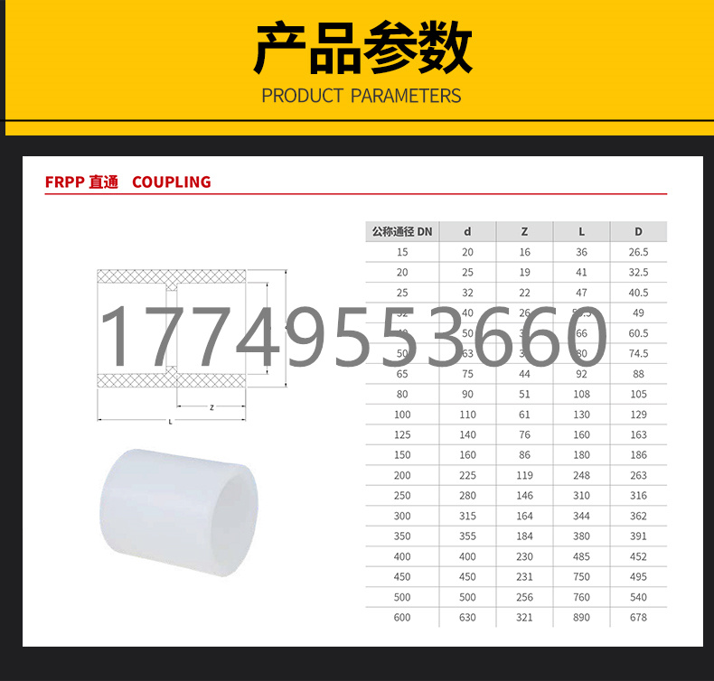 FRPP热熔承插直接直通-DN15-DN800