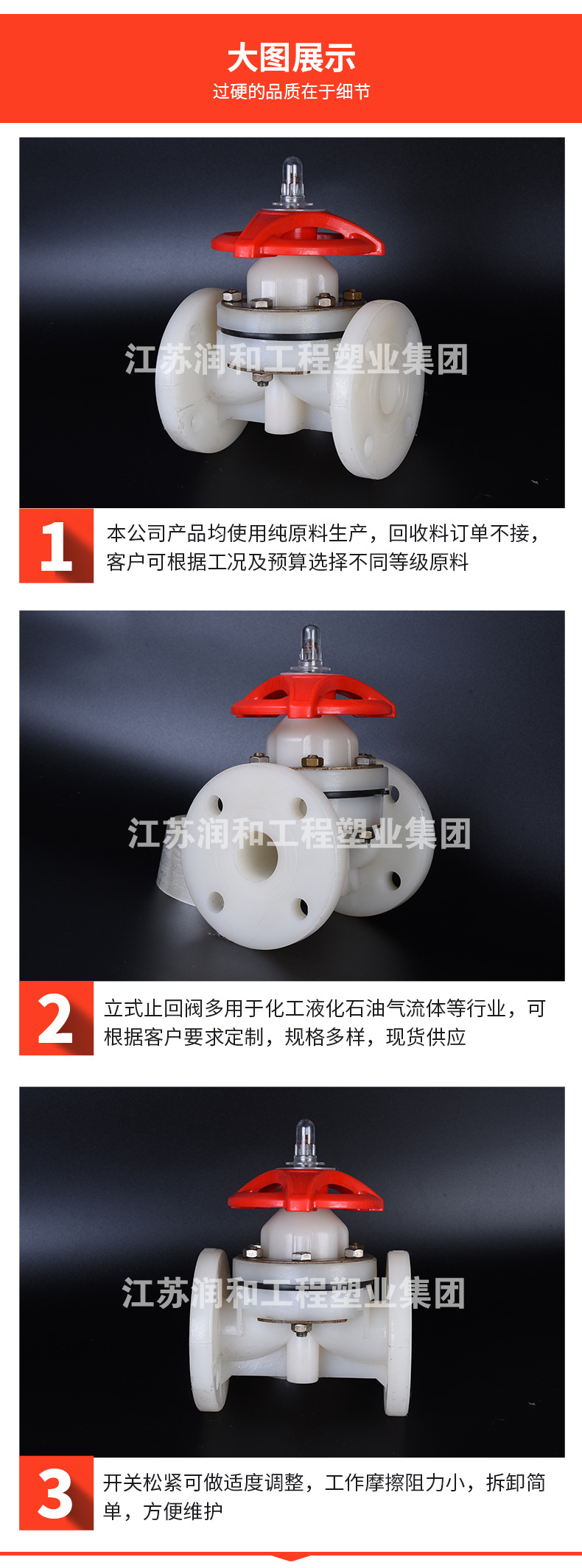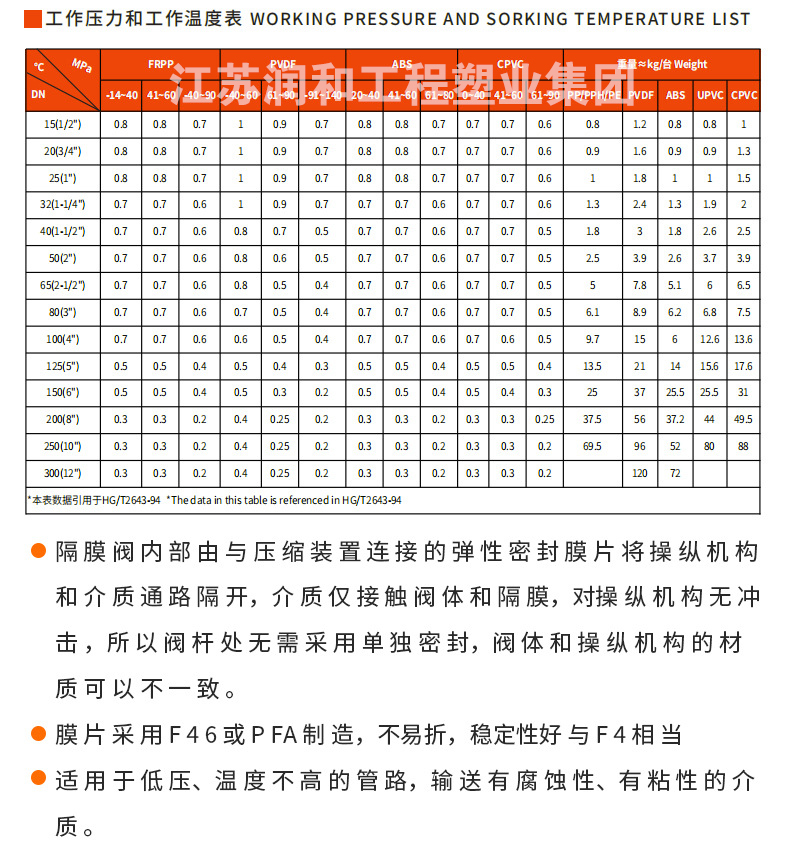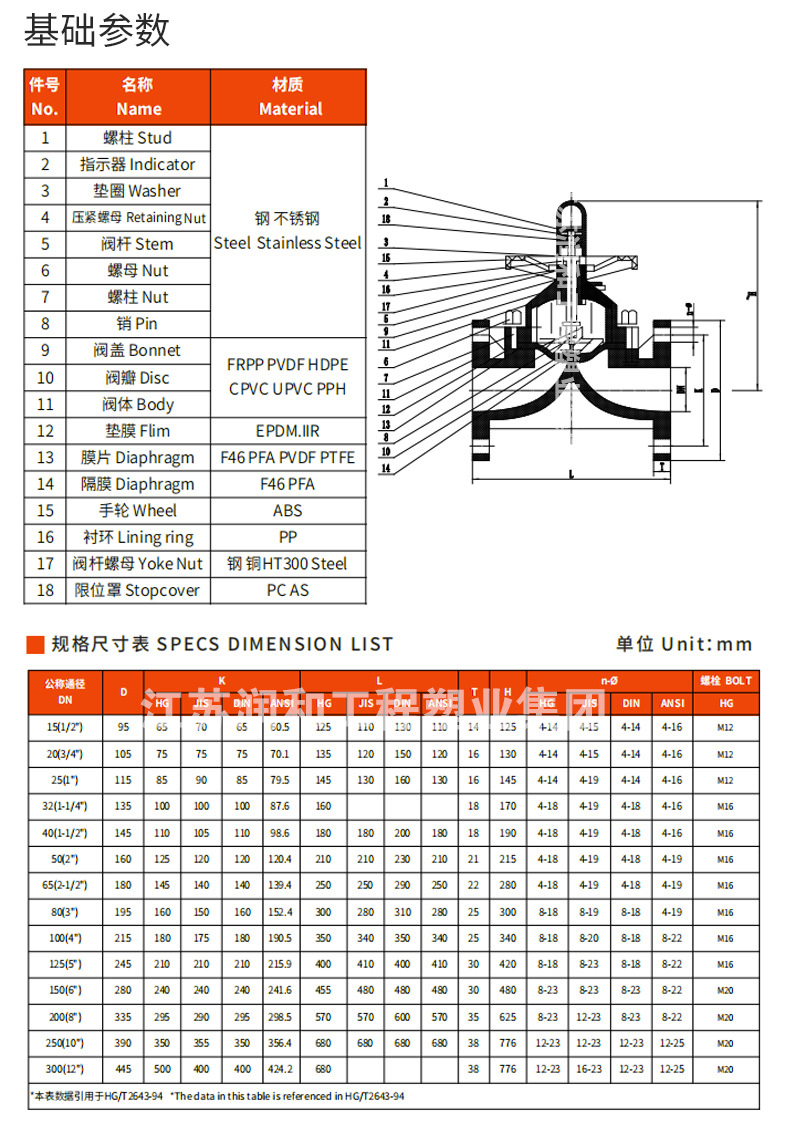 江苏钱柜qg777工程塑业有限公司主要生产工程化工FRPP管材、PPH管材、PVDF管材防腐管阀件,三通、弯头、法兰、直接、垫环、盲板、钢塑法兰、内丝外丝、管帽以及化工喷淋塔、洗涤塔、废气处理等设备。阀门类:法兰隔膜阀、法兰球阀、手柄蝶阀、涡轮蝶阀、双由令球阀、法兰截止阀、法兰底阀、升降式止回阀、旋启式止回阀、热熔止回阀、板式止回阀、呼吸阀、氟胶蝶阀、玻璃视镜、Y型过滤器、活接、液面计、四通视镜、阻火器、安全阀、背压阀等 咨询电话:17749553660