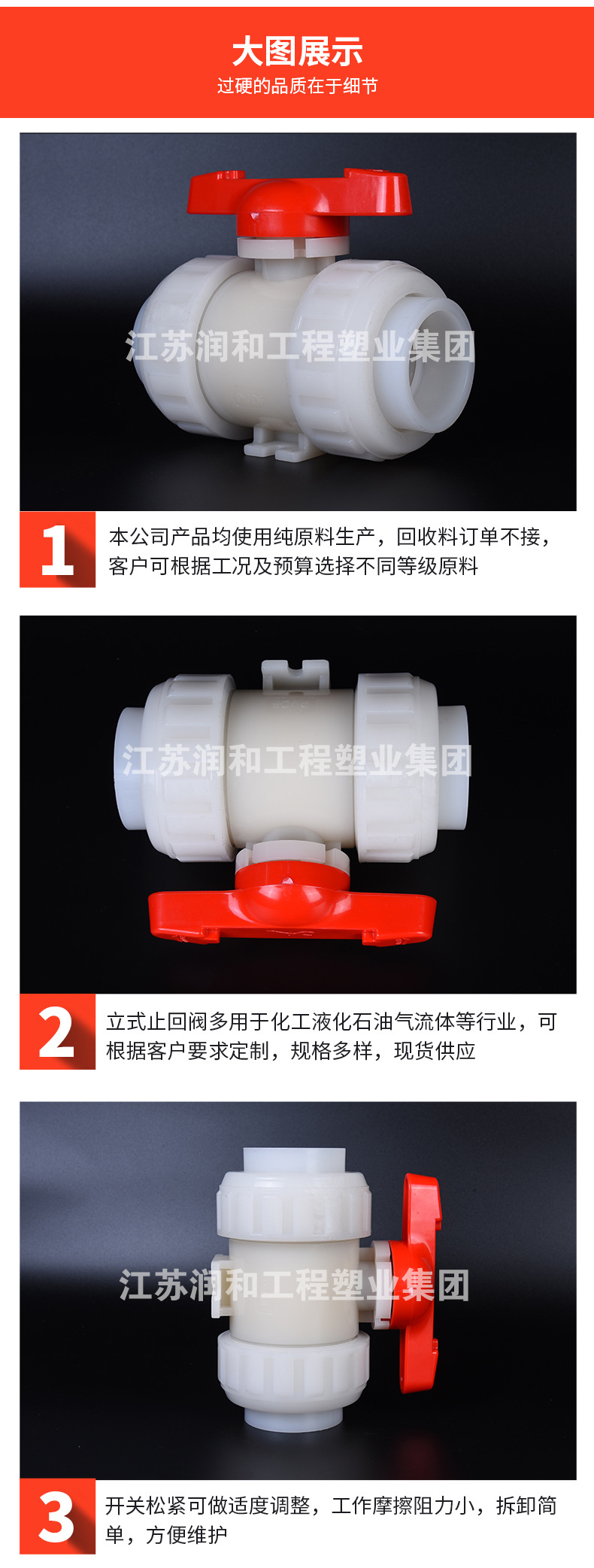 江苏钱柜qg777工程塑业有限公司主要生产工程化工FRPP管材、PPH管材、PVDF管材防腐管阀件,三通、弯头、法兰、直接、垫环、盲板、钢塑法兰、内丝外丝、管帽以及化工喷淋塔、洗涤塔、废气处理等设备。阀门类:法兰隔膜阀、法兰球阀、手柄蝶阀、涡轮蝶阀、双由令球阀、法兰截止阀、法兰底阀、升降式止回阀、旋启式止回阀、热熔止回阀、板式止回阀、呼吸阀、氟胶蝶阀、玻璃视镜、Y型过滤器、活接、液面计、四通视镜、阻火器、安全阀、背压阀等 咨询电话:17749553660