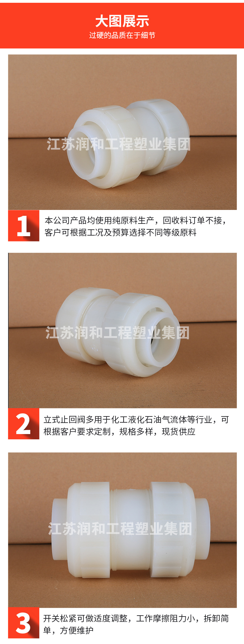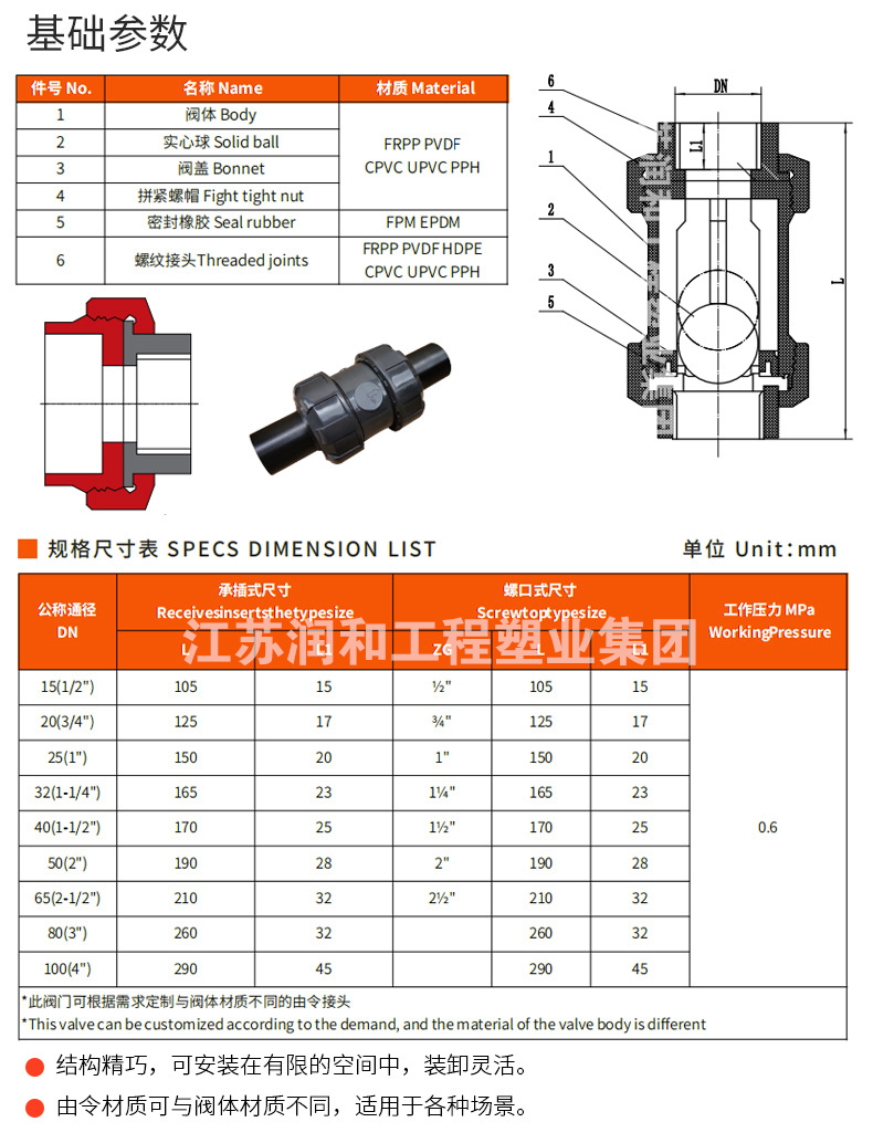 江苏钱柜qg777工程塑业有限公司主要生产工程化工FRPP管材、PPH管材、PVDF管材防腐管阀件,三通、弯头、法兰、直接、垫环、盲板、钢塑法兰、内丝外丝、管帽以及化工喷淋塔、洗涤塔、废气处理等设备。阀门类:法兰隔膜阀、法兰球阀、手柄蝶阀、涡轮蝶阀、双由令球阀、法兰截止阀、法兰底阀、升降式止回阀、旋启式止回阀、热熔止回阀、板式止回阀、呼吸阀、氟胶蝶阀、玻璃视镜、Y型过滤器、活接、液面计、四通视镜、阻火器、安全阀、背压阀等 咨询电话:17749553660