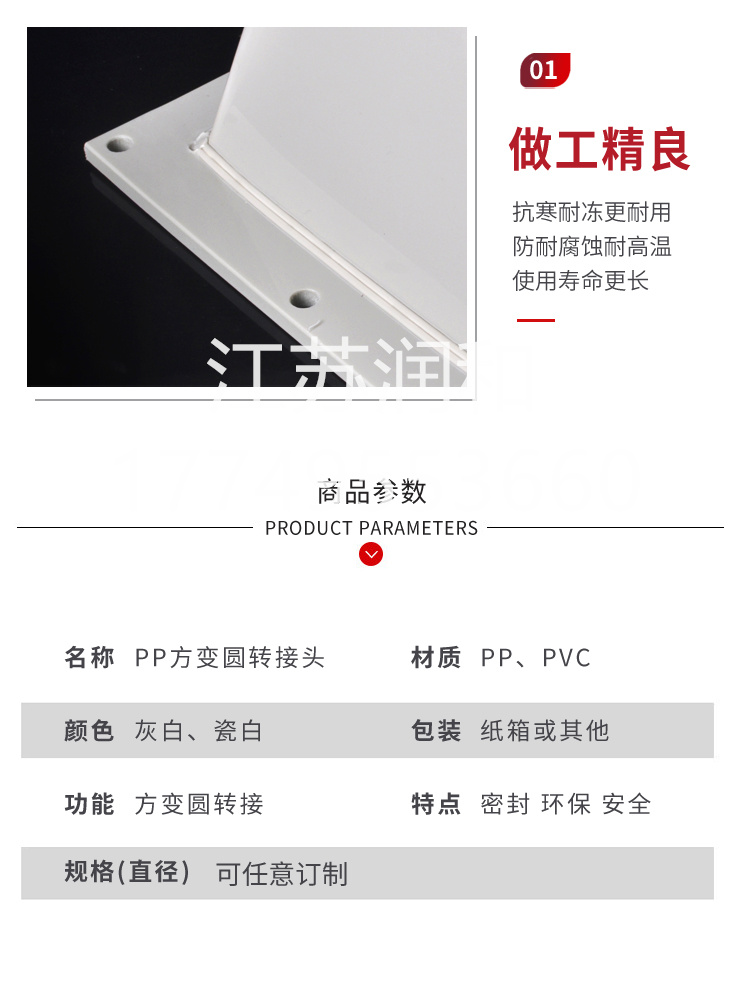 PPH方变圆天方地圆风管承插焊接DN15-DN2000