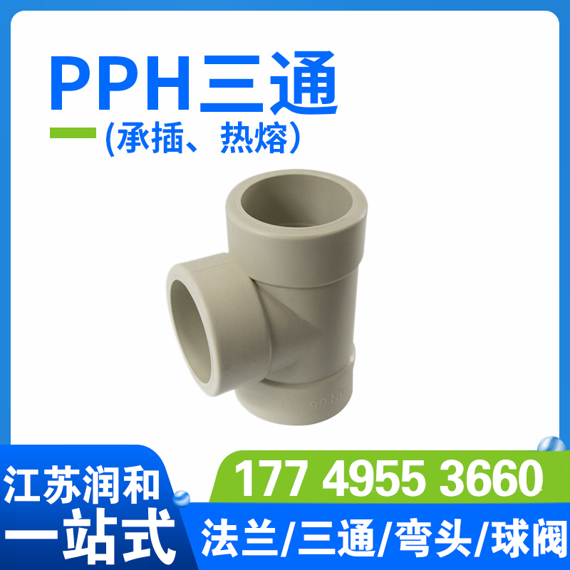 江苏钱柜qg777工程塑业有限公司生产PPH三通-分为热熔焊接 对焊焊接 承插焊接 均聚聚丙烯 主要生产工程化工FRPP管材、PPH管材、PVDF管材防腐管阀件,三通、弯头、法兰、直接、垫环、盲板、钢塑法兰、内丝外丝、管帽以及化工喷淋塔、洗涤塔、废气处理等设备。