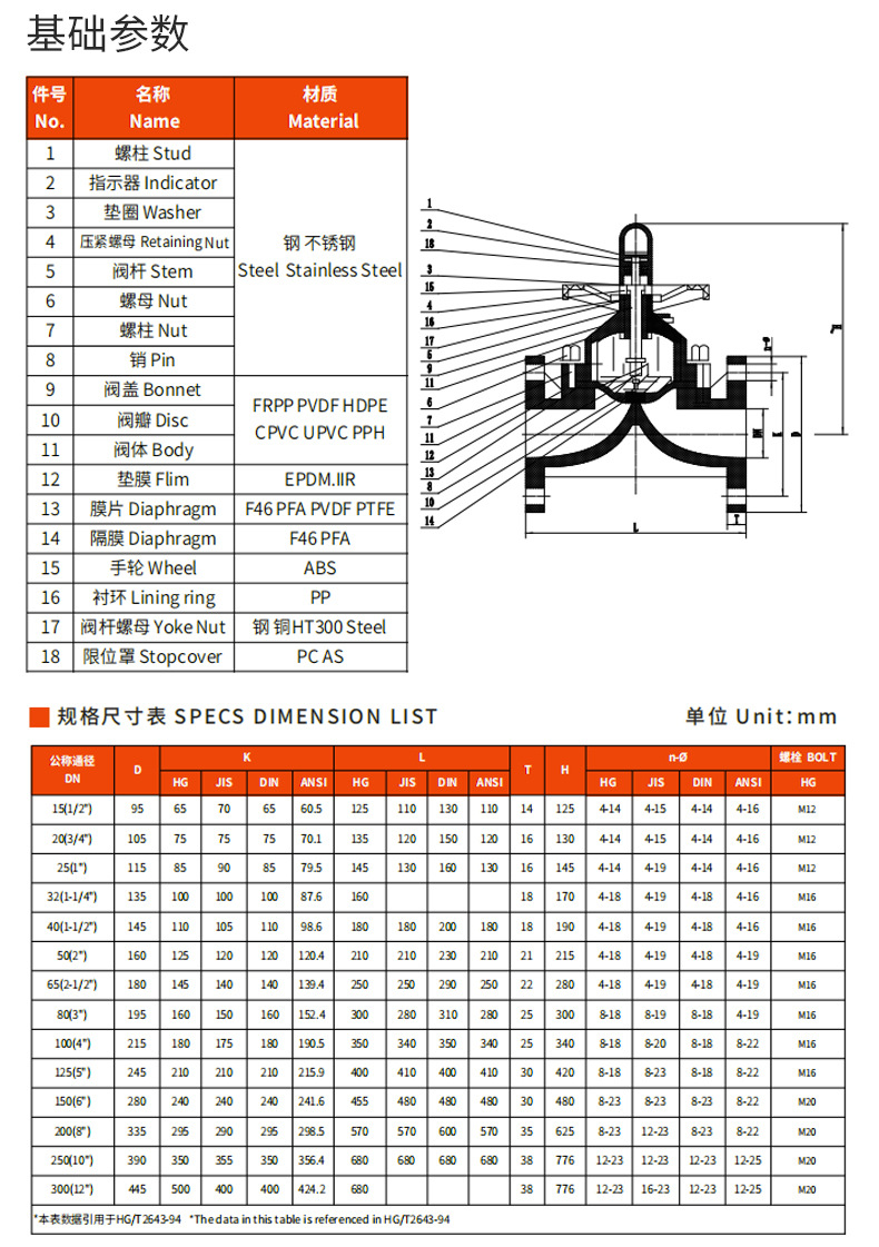 PPH法兰隔膜阀G41F-10S-均聚聚丙烯