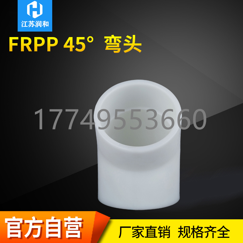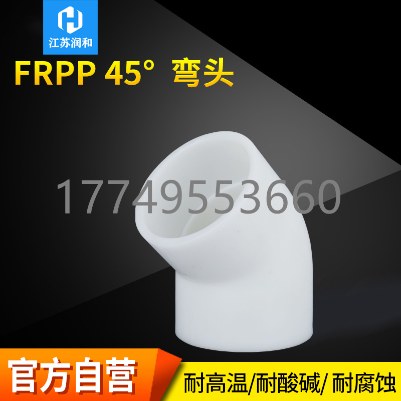 江苏钱柜qg777工程塑业有限公司生产FRPP45度弯头-分为热熔焊接 对焊焊接 承插焊接 均聚聚丙烯 主要生产工程化工FRPP管材、PPH管材、PVDF管材防腐管阀件,三通、弯头、法兰、直接、垫环、盲板、钢塑法兰、内丝外丝、管帽以及化工喷淋塔、洗涤塔、废气处理等设备。阀门类:法兰隔膜阀、法兰球阀、手柄蝶阀、涡轮蝶阀、双由令球阀、法兰截止阀、法兰底阀、升降式止回阀、旋启式止回阀、热熔止回阀、板式止回阀、呼吸阀、氟胶蝶阀、玻璃视镜、Y型过滤器、活接、液面计、四通视镜、阻火器、安全阀、背压阀等 咨询电话:17749553660