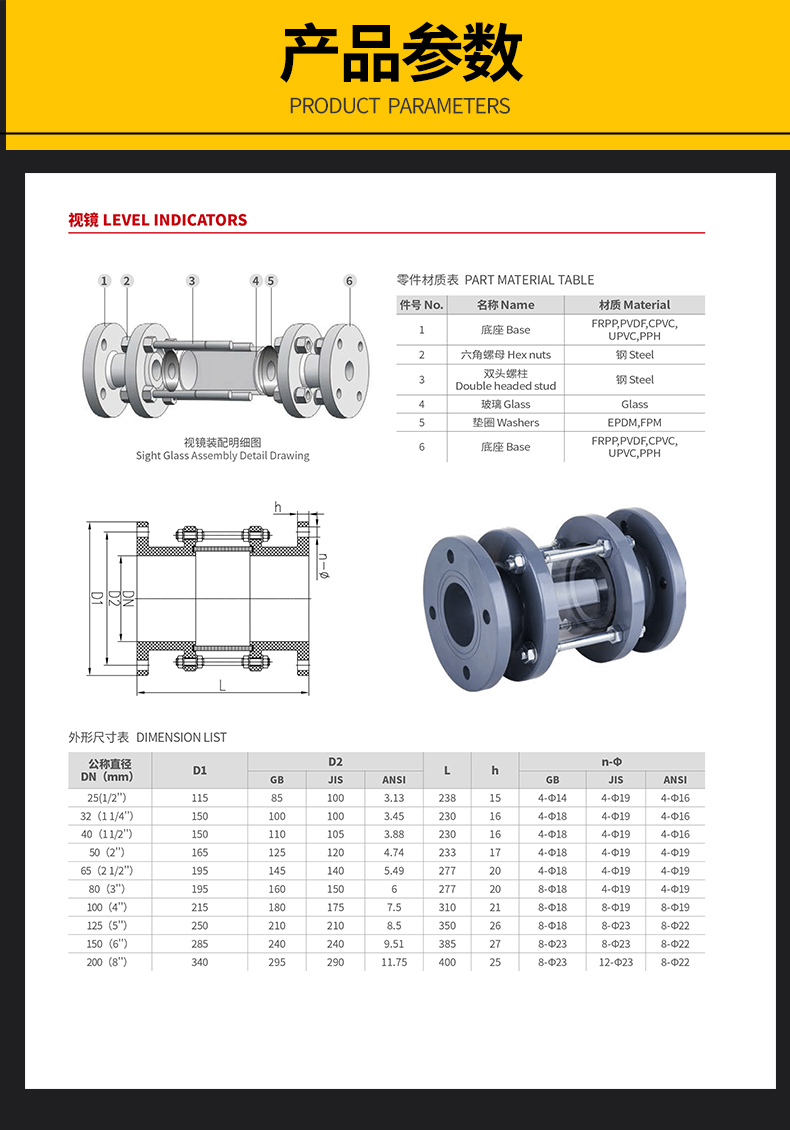 江苏钱柜qg777工程塑业有限公司生产FRPP玻璃视镜主要生产工程化工FRPP管材、PPH管材、PVDF管材防腐管阀件,三通、弯头、法兰、直接、垫环、盲板、钢塑法兰、内丝外丝、管帽以及化工喷淋塔、洗涤塔、废气处理等设备。阀门类:法兰隔膜阀、法兰球阀、手柄蝶阀、涡轮蝶阀、双由令球阀、法兰截止阀、法兰底阀、升降式止回阀、旋启式止回阀、热熔止回阀、板式止回阀、呼吸阀、氟胶蝶阀、玻璃视镜、Y型过滤器、活接、液面计、四通视镜、阻火器、安全阀、背压阀等 咨询电话:17749553660