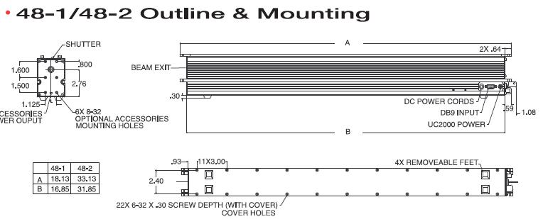 输出光束形式说明:90度拐弯输出是穿过底板向下输出激光束。