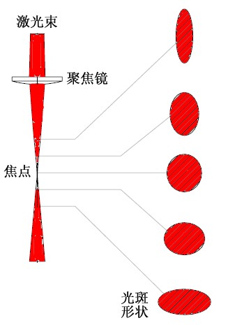 激光束光斑形状:在焦点上是圆形的,离焦后带点椭圆形。