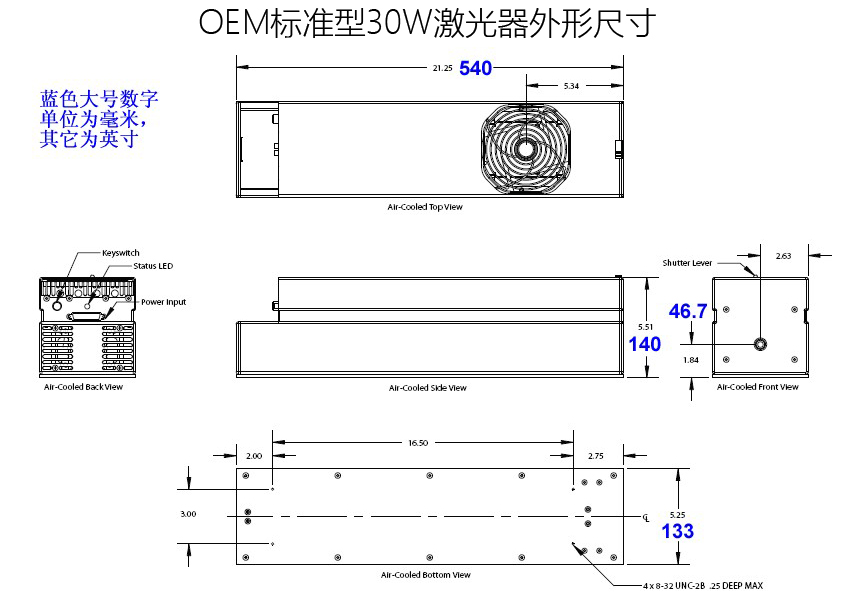 所有激光器都是风冷激光器,两种结构是OEM基本型、OEM标准型。