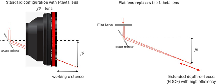 75mm超长焦深, 对不同深度的重叠物体实现无像差成像,非常适合激光加工(打标/焊接/切割)